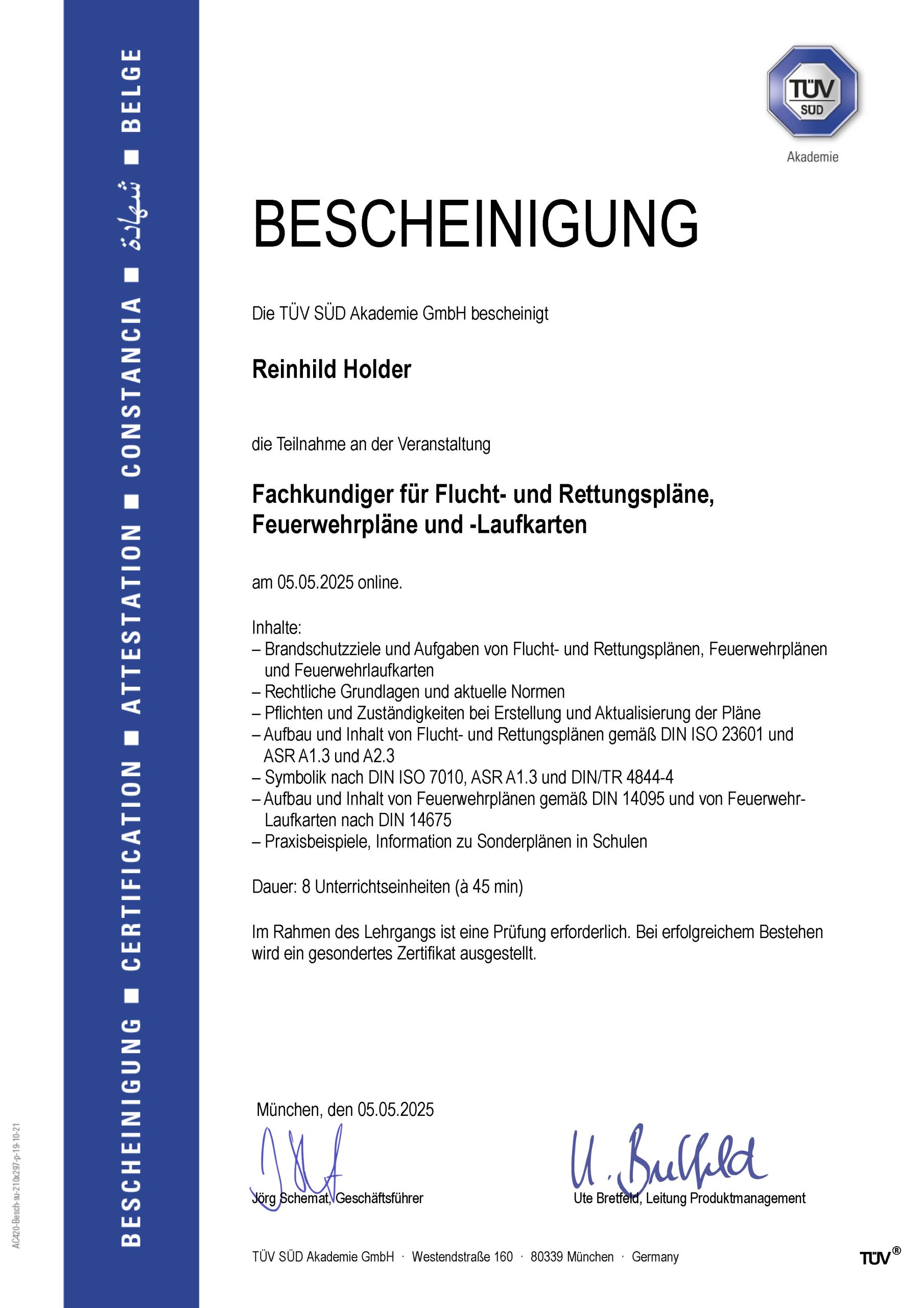 Befähigte Person für die Erarbeitung und Prüfung von Flucht- und Rettungsplänen